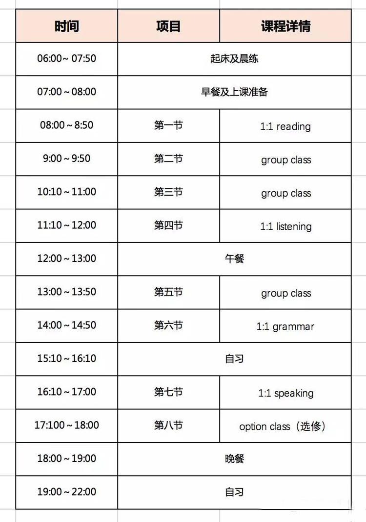 感受一下菲律宾随机一个斯巴达学校的日程表: