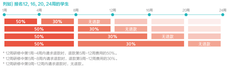 4周,延长课程以2周为单位,延长2周费用为4周的50% |