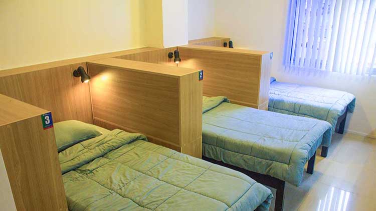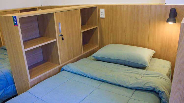 WIFI(房间内也可使用)、单间、2/3人间、床、衣柜、TV、书桌、椅子、厕所(温水淋浴) |