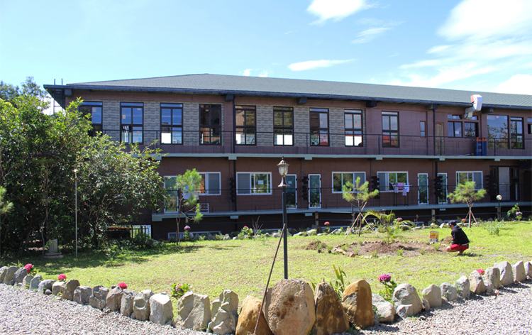 位于山顶,四周群山环抱,树木葱郁,有着美丽的风景于眼前,惬意的学习环境。