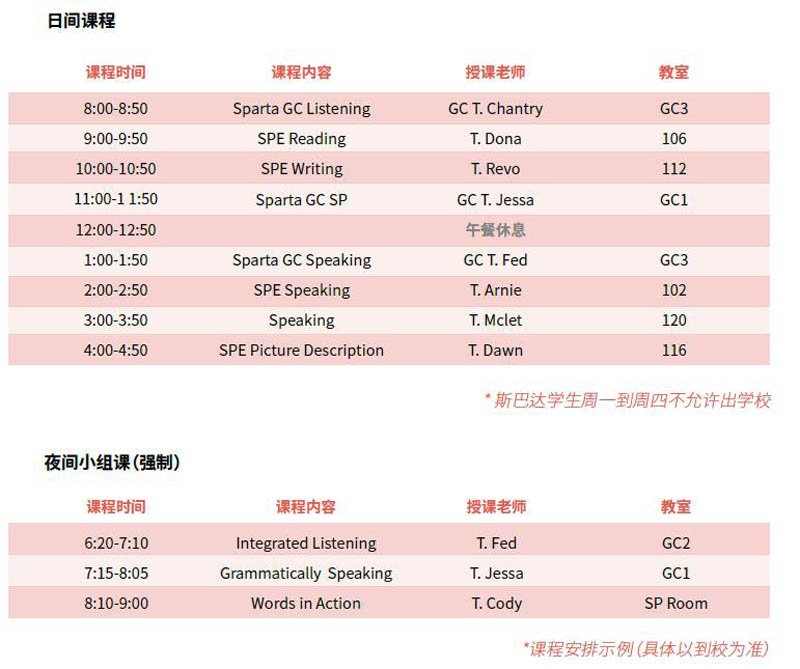 • Sparta Speaking - 旨在帮助我们的学生在课堂上发言时候,提供更完整的答案,同时SP课程中学到的任何词汇和表达都将在他们的每周口语测试中得到使用。