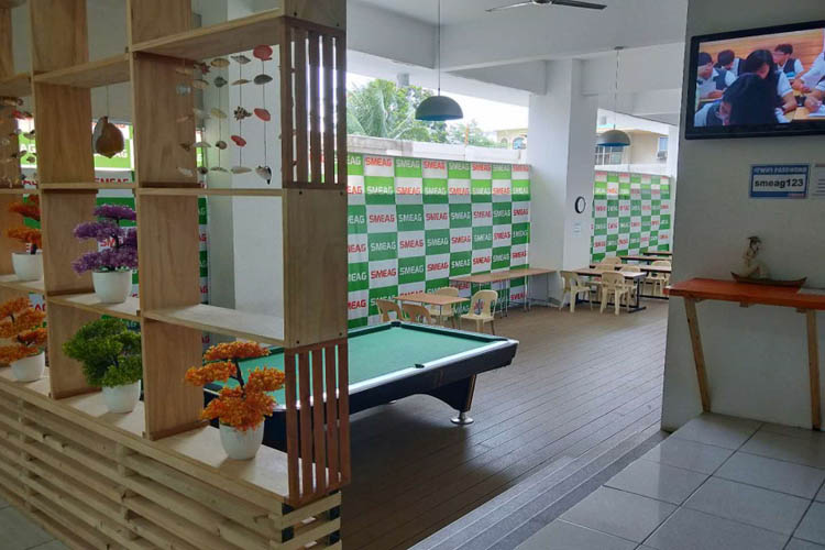 SMEAG-SPARTA是位于宿务市中心的Mabolo区,离宿务最大的SM和AYALA两大购物中心只有几分钟路程,周围聚集着很多的美食餐厅和观光点。学校是宿务名副其实的大规模的英语学校之一,学校有三个校区雅思,ESL ,托福,总学员1400人。ESL是斯巴达校区,学生超过400多。2018年更是搬到了新校区。2017年的下半年引进了世界公认的剑桥(Cambridge)英语教学系统。