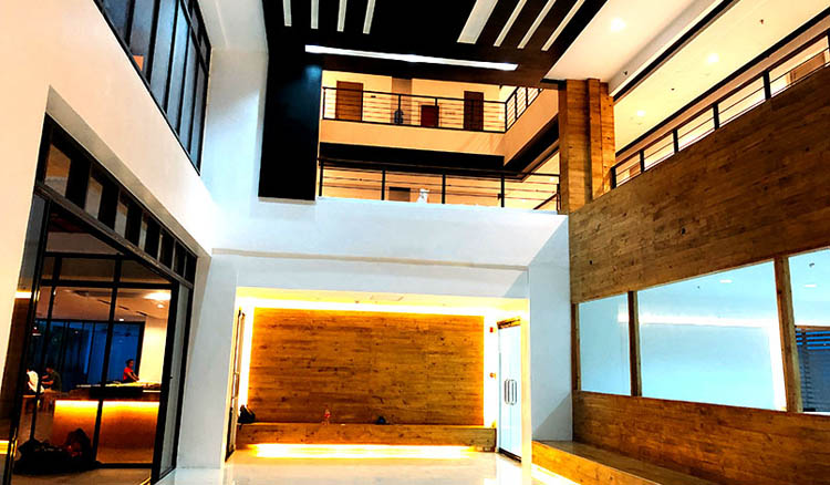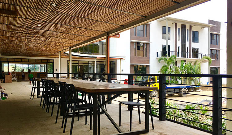 从早上6点开始到夜间,学校安排有跟老校区一样的多达11课时的授课安排,不过学校同时也提供半斯巴达课程,学员平时可以出校门。 如果想要认真努力学习的学员,建议选择传统斯巴达课程。如果想要在课后稍微放松一下,可以选择半斯巴达课程。而且,选择了斯巴达课程的学员,如果想要在平时出校门,也可以换成半斯巴达课程。 但是,为了维持学校良好的学习氛围,学校规定选择半斯巴达课程的学员人数不能超过学校总人数的35%。 EV新修的教学楼,是法国籍校长David 的时尚设计,尤其受到女性的喜欢。之前的老校区已经颇受欢迎,新校区的现代化时尚建筑更加吸引人。 EV Academy的新校区位于宿务 Tarampan的郊外,但是因为位于南部,所以靠近宿务市中心,大约需要15分钟的车程。 据学校工作人员介绍,来自中东、欧洲的学员预计会逐渐增多,所以这也构成了EV的另一大特色,学员的国籍比例会越来越丰富。