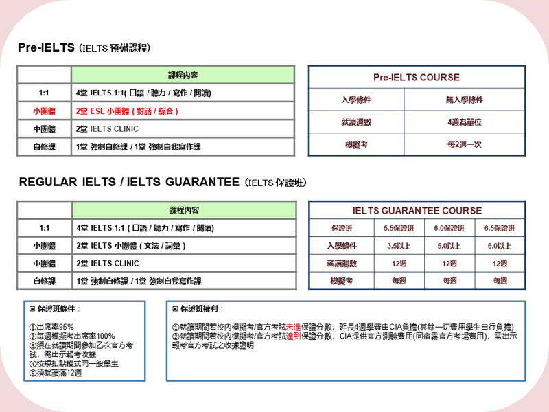 CIA成立于2003年,经过21年的发展,成为了菲律宾英语游学的领跑者。通过对课程的深入研究,形成半斯巴达教学管理模式。 一对一授课、小组课及与外教授课等,能帮助学员更准确地发音、更有效地提高英语沟通能力。 此外,学校还提供了考试准备课程,如托业、雅思等。